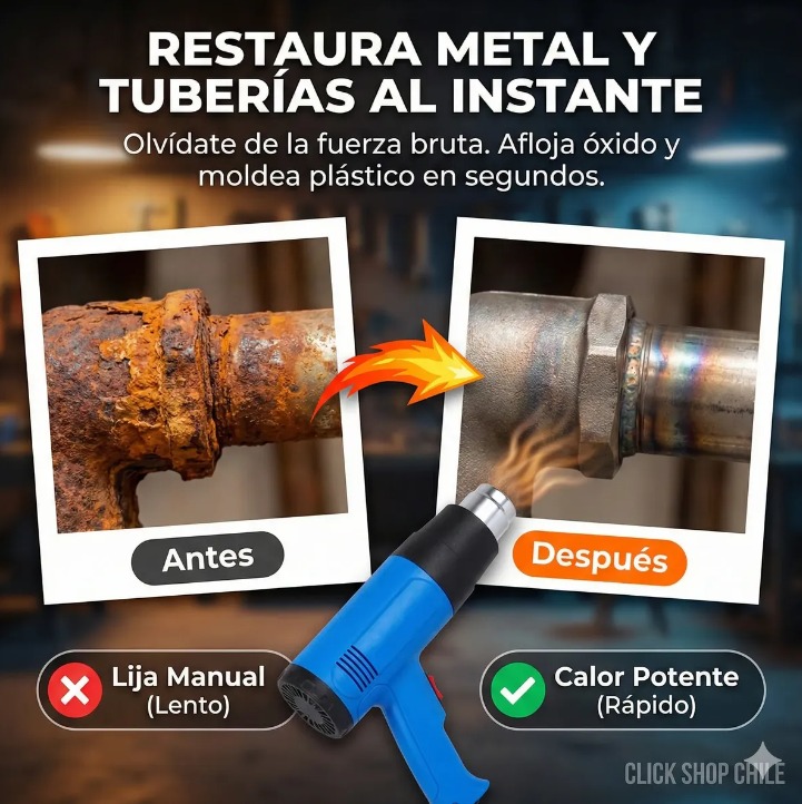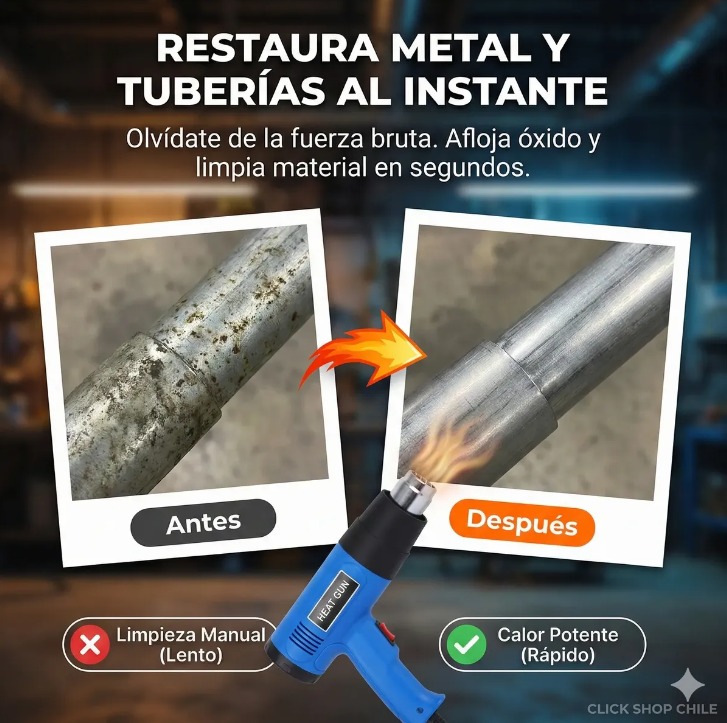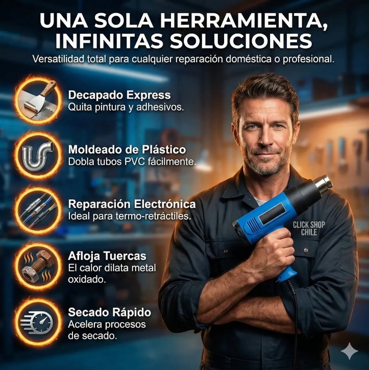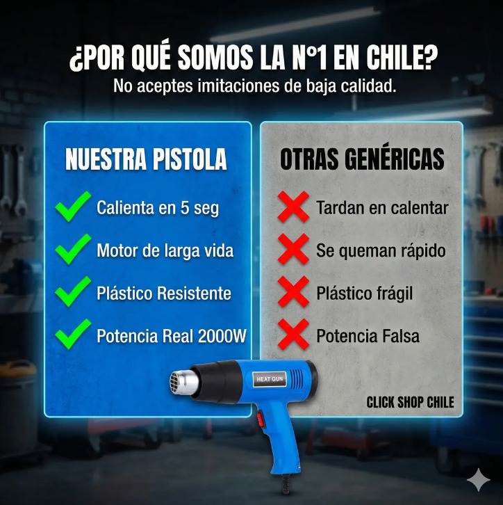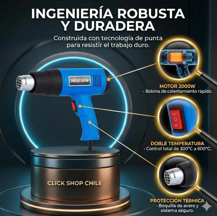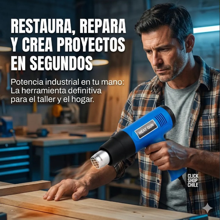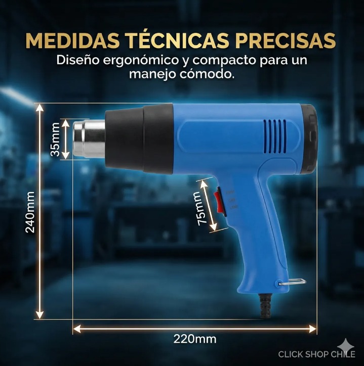 DESCRIPCIÓN DEL PRODUCTO: Con nuestra pistola de aire caliente puede quitar fácilmente adhesivos, pintura y descongelar cerraduras congeladas. Elemento de gran alcance proporciona suficiente concentración de calor para quitar la pintura. Ideal para materiales de fusión, de ablandamiento pintura y plástico, quitar la etiqueta engomada adhesivo, doblar el tubo de plástico, el cambio de la baldosa, quitar tuercas de metal oxidadas o apretadas y tornillo entre otros usos. La potente pistola de aire caliente de 2000 W puede eliminar incluso las capas de pintura más difíciles. Equipada con un interruptor para ajustar el flujo de aire y la temperatura. Gracias al diseño compacto, es fácil de usar y llevar.